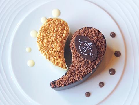 今年のヴァレンタインはカフェデゥラペでガストロノミーディナーはいかがですか? カステルノーのロゼシャンパンに始まり、ラングスティーヌ、フォアグラ、黒トリュフなどを堪能し、最後は中国の陰陽マークをイメージしたデセールをお楽しみいただけます♪